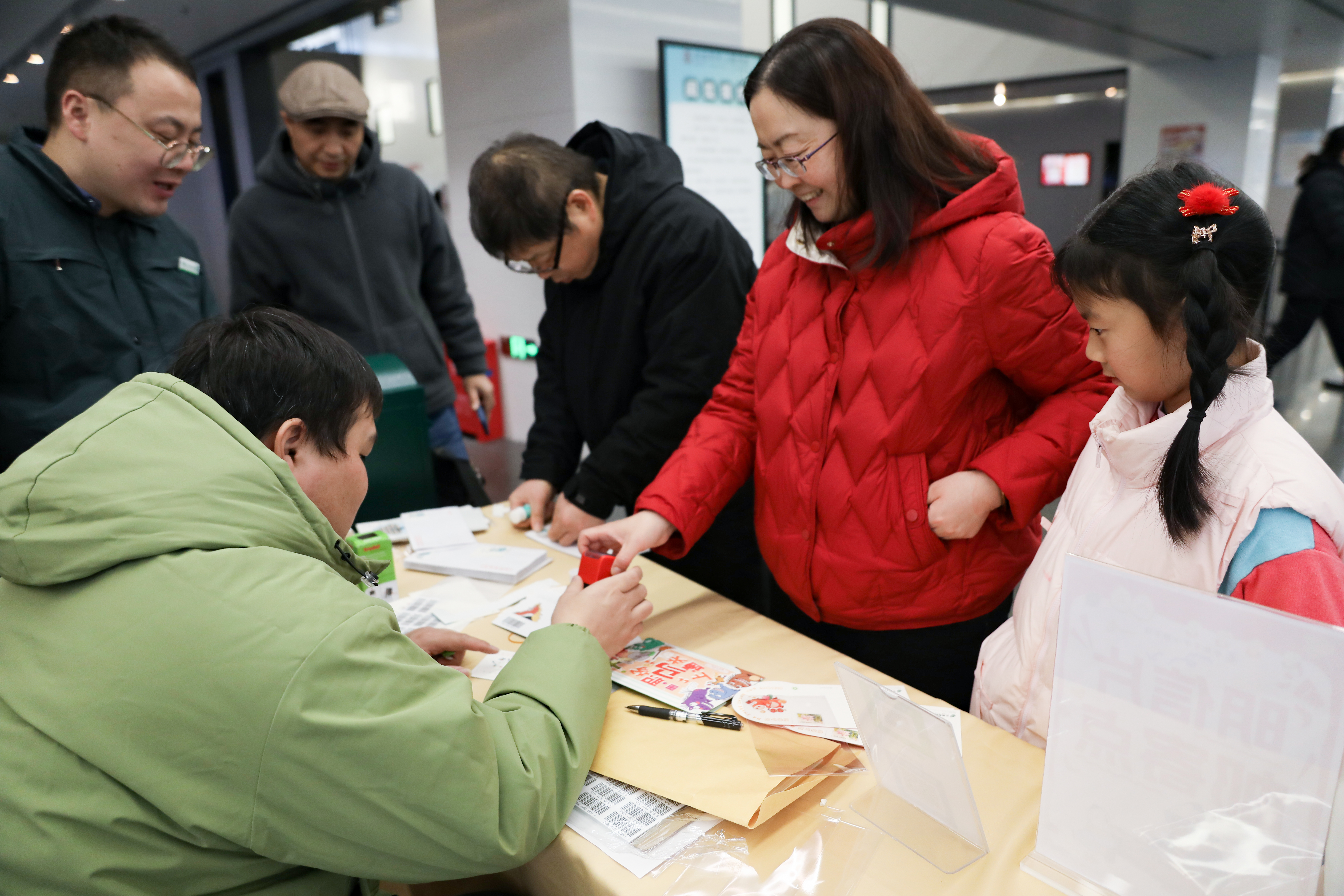 现场特意设置了书写长桌与墨笔专区,不少读者俯身提笔,将新年的期盼、远方的牵挂、自我的鼓励,一笔一划落于纸面。活动中,“0001号收信人”的故事尤为动人。常在鹅馆自习、最终考入中国政法大学的小何同学,虽身在远方,仍嘱托家人代为购买并寄送一套明信片至学校。鹅馆获悉后,主动赠予明信片,为其加盖首日纪念邮戳免费寄出,以此见证一场源于书香、长于陪伴的成长情谊。